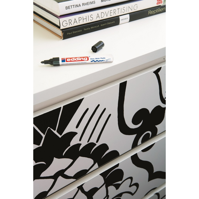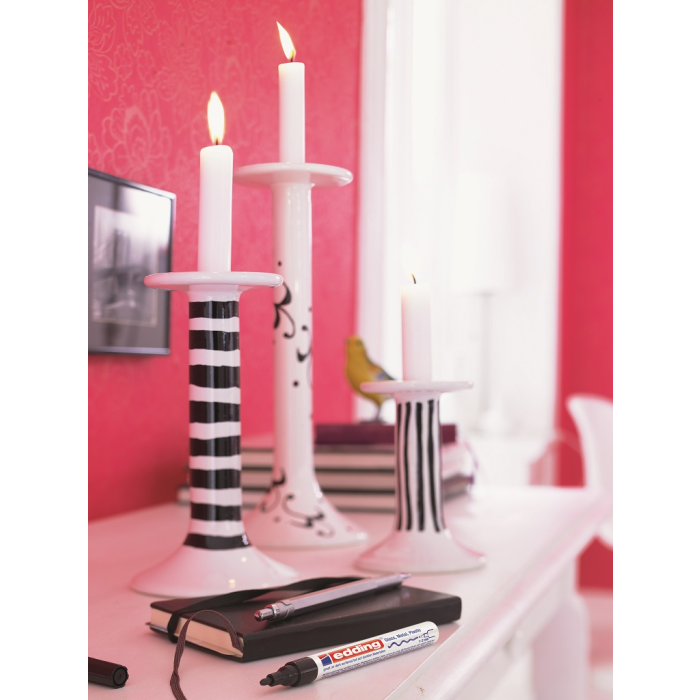 Lakový popisovač s hliníkovým obalom, vhodný pre vodovzdorné písanie, značkovanie a kreslenie na takmer všetky materiály. Nearomatický pigmentový atrament bez prísad toluénu/ xylénu rýchlo schne a vytvára úplne krycí lakovaný povrch, vhodný aj pre tmavé a priehľadné povrchy. Vysoká stálosť na svetle, nezmazateľnosť a odolnosť voči ohňu. Prietok atramentu riadený ventilom. Hrot okrúhly, šírka stopy 2 - 4 mm. Väčšie balenie 10 ks.