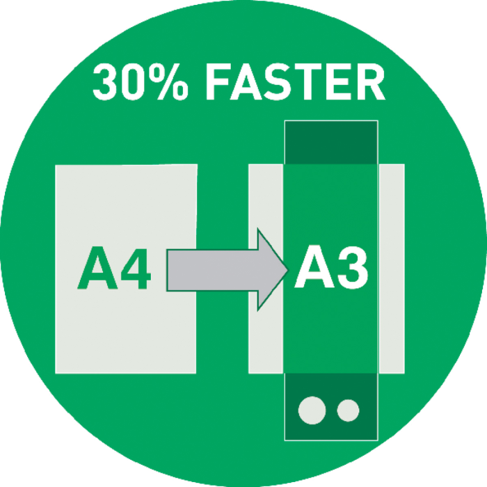 Štýlový a kompaktný laminovací prístroj Leitz iLAM Home Office spája moderný dizajn s funkčnosťou. Tento pre obsluhu prívetivý laminátor vo formáte A3 ponúka rýchle 2-minútové zahriatie a dokument A4 v 80-mikrónovej kapse na laminovanie zalaminuje už za obyčajných 45 sekúnd. Kolískový prepínač umožňuje výber z troch úrovní hrúbky kapsy na všestranné použitie a splnenie všetkých požiadaviek na laminovanie. Hladkú prevádzku zabezpečuje mechanizmus proti zaseknutiu kapsy tak, že bez námahy odstráni akékoľvek zaseknuté alebo zle vložené vrecká na laminovanie. Inovatívna inteligentná stavová LED dióda uľahčuje používanie pomocou intuitívnych svetiel a zvukov: červená dióda znamená zahrievanie, zelená so zvukovým upozornením oznamuje pripravenosť na laminovanie, blikajúca červená dióda znamená automatické vypnutie po 15 minútach nečinnosti. Chráňte svoje dokumenty rýchlo, efektívne a štýlovo. Určené na kapsy od 75 do 125 mikrónov. TUV/GS, CE certifikácia. Strieborná a biela farba.