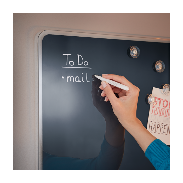 • Sklenená magnetická tabuľa na písanie Leitz Cosy je nástroj na písanie poznámok, ktorý možno používať opakovane. • Píšete jednoducho pomocou priloženej suchej fixky, potom stačí zotrieť a začať znovu.