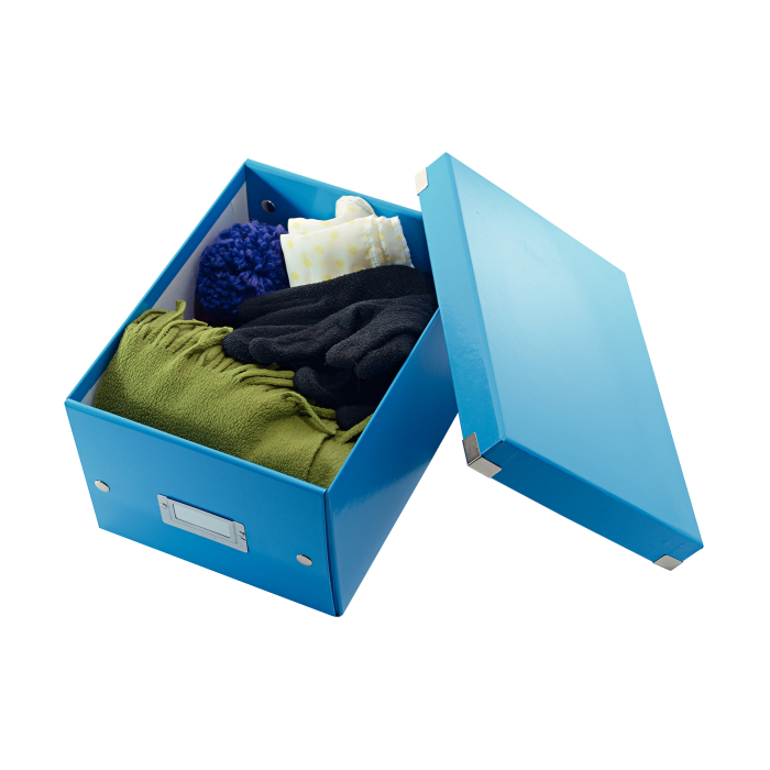 Univerzálna malá archivačná krabica (pre formát A5). Skladacia pre úsporu miesta, keď sa nepoužíva. Rámik na popisovací štítok. Laminovaný povrch a kovové rohy pre lepšiu a trvalejšiu ochranu. Moderný design, ktorý sa bude skvelo vynímať v každej kancelárii.Jednoduché zloženie a vysoká stabilita vďaka vylepšenej konštrukcii krabice. Veľkosť krabice odpovedá bežným kancelárskym rozmerom (na formát A5). Dodajte svojmu pracovnému miestu alebo domácnosti farbu a skombinujte krabicu s ostatnými kancelárskymi výrobkami z radu Leitz WOW. Rámik na štítok pre ľahké popisovanie. Materiál pevný kartón potiahnutý polaminovaným papierom. Vnútorné rozmery (Š x V x H): 200 x 148 x 250 mm. Farba metalická modrá.