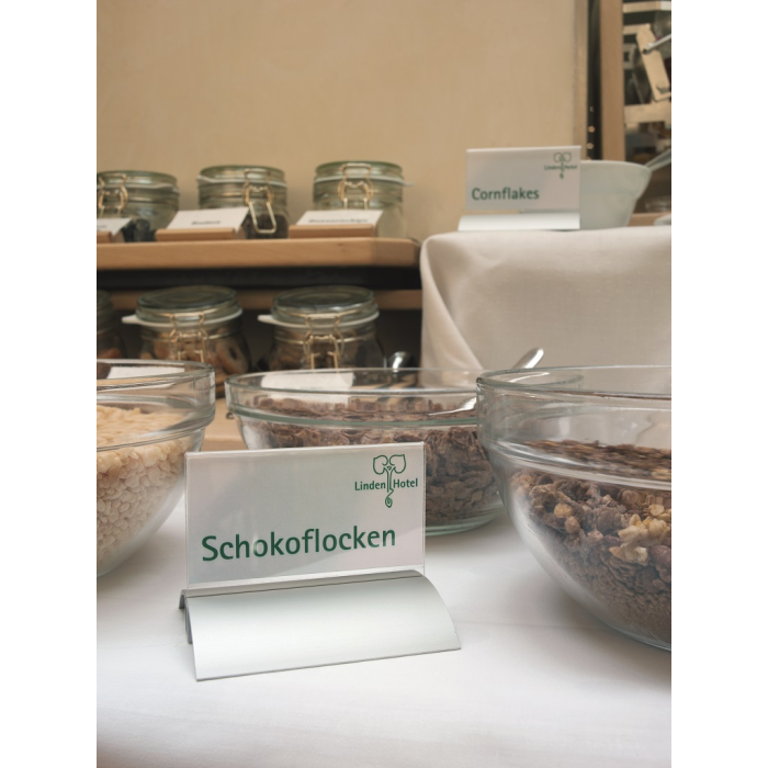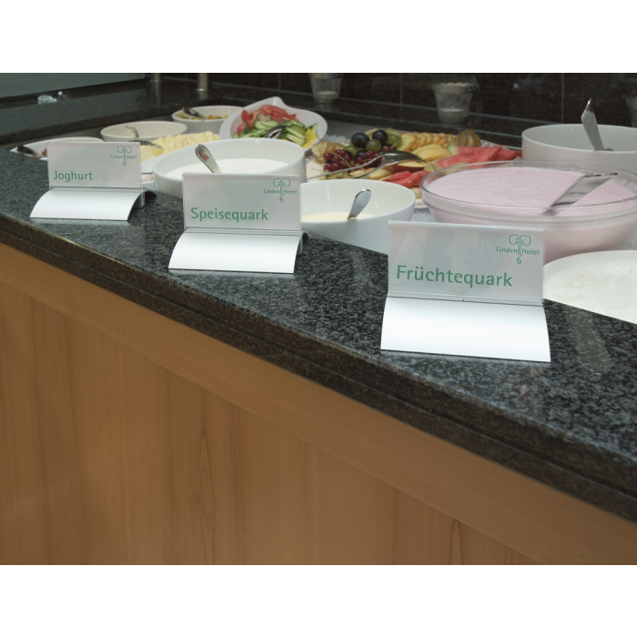 Štýlová stolová menovka s hliníkovým podstavcom. Unikátny uchytávací systém zabraňuje samovoľnému alebo neželanému vysunutiu menovky.Čítanie z oboch strán. Ideálna na konferencie, porady alebo miesta na styk so zákazníkom. Balenie 2 ks.
