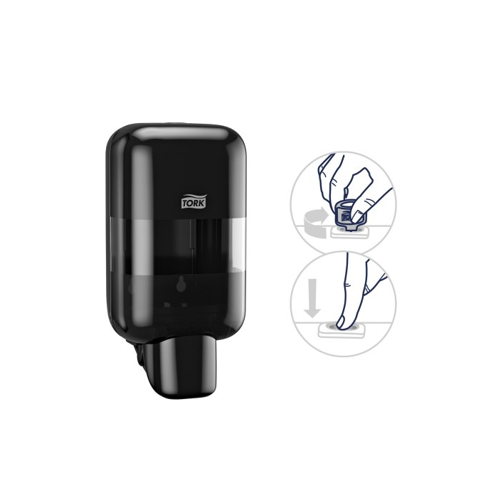 Mini zásobník na mydlá a dezinfekčné prostriedky Tork, čierny S5, 0,525l