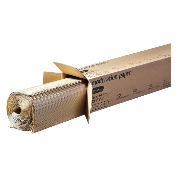 Hnedý papier v plošnej hmotnosti 80 g / m² určený na potreby moderácie. Bezchlórová úprava. Balenie 100 hárkov. Rozmery 116 × 140 cm.