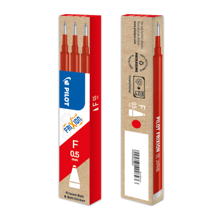 Náplň s prepisovateľným atramentom do rollerov Pilot FriXion Clickera FriXion Ball. V balení 3 ks. Gulička 0,5 mm.