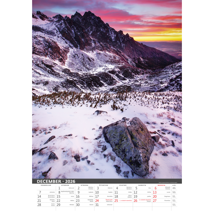 Nástenný kalendár Tatry 31,5 x 45 cm 2026