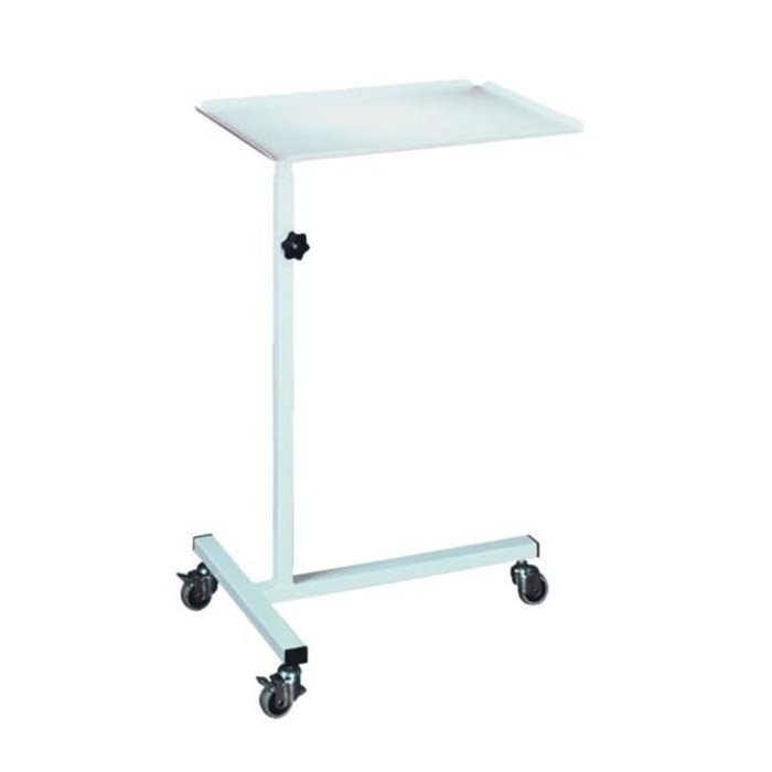 Stolík na inštrumenty do zdravotníckych zariadení, určený na prevoz vecí do 10 kg. Stolík stojí na antistatických kolieskach, 2 kolieska sú brzdené. S nastaviteľnou výškou od 920 do 1380 mm.
