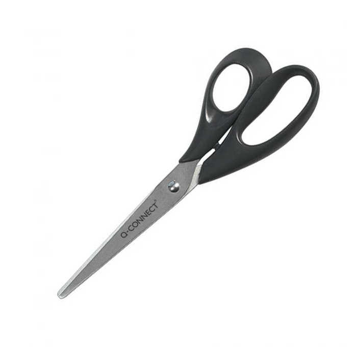 Univerzálne kancelárske nožnice na strihanie papiera, kartónu, lepenky, samolepiacej pásky a pod. so strihacou časťou z nehrdzavejúcej ocele. Farba čierna. Veľkosť: 25,5 cm.