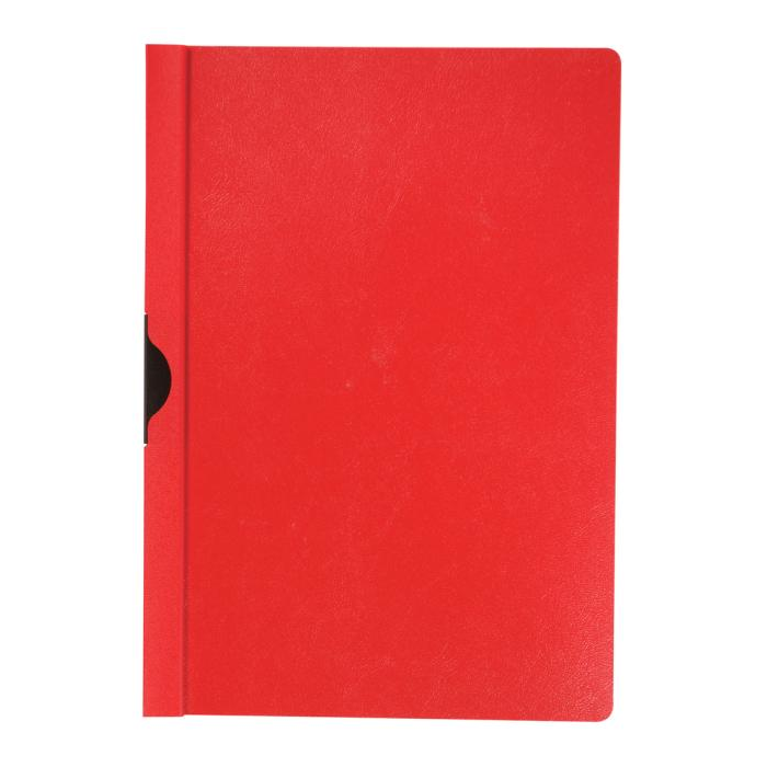 Obal z pevného polypropylénu s priehľadnou prednou stranou a kovovým vyklápacím klipom v čiernej farbe. Formát A4. Kapacita 1 - 30 listov. Väčšie balenie 25 ks. Farba červená.