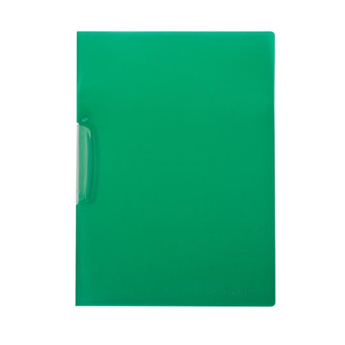 Obal z pevného polypropylénu s priehľadnou prednou stranou vo farbe obalu a priehľadným vyklápacím klipom z plastu. Formát A4. Kapacita 1 - 30 listov. Väčšie balenie 25 ks. Farba zelená.