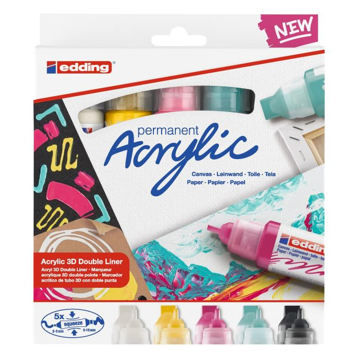 Inovatívne navrhnutá tuba s dvomi hrotmi rôznych veľkostí pre jedinečné techniky maľovania.. Pripravený k použitiu. Používa sa jednoduchým stlačením tuby (nie je potrebný žiadny štetec). Jednoduché a čisté použitie pre nekomplikovanú a spontánnu kreativitu. Široká škála brilantných farieb. Fóliový obal zaručuje, že produkt bol pri zakúpení nepoužitý. Vyrobené v Nemecku. Vysokokvalitný značkový produkt.