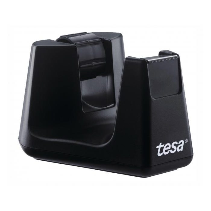 Stolný zásobník lepiacej pásky pre domácnosť a kanceláriu. Vybavený vrúbkovaným nožom na presné rezanie a protisklzovou podložkou pre stabilnú polohu na stole. Vyrobený zo 100% recyklovaného plastu. Dodávaný bez pásky. Vhodný pre pásky tesa do šírky 19 mm a návinu 33 m. Farba čierna.