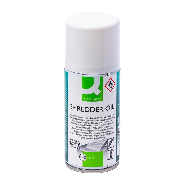 Mazací a čistiaci olej na použitie v skartovačkách dokumentov Zabraňuje nadmernému opotrebovaniu a je biologicky odbúrateľný. Možno použiť pre zariadenia s rezaním častíc. Obsah: 150 ml.