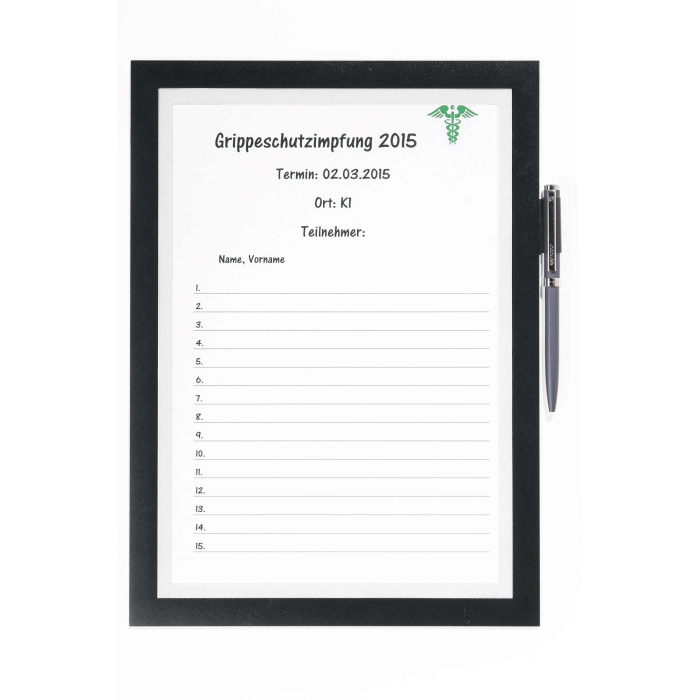 Samolepiaci panel s držiakom na pero slúži na písanie poznámok. Dodávaný s 5 listami na písanie. Formát A4. Farba čierna.