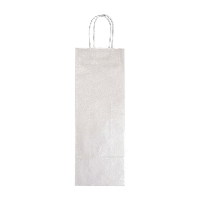 Papierová taška na víno. Farba strieborná. Ušká stáčané. Gramáž papiera 110g. Cena za kus. Rozmery v mm