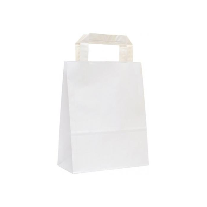 Papierová taška na univerzálne použitie. Farba biela. Ušká ploché. Cena za kus. Rozmery v mm