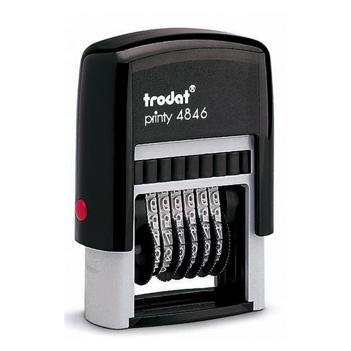 Samofarbiaca 6-číslicová pečiatka. Výška čísel 4 mm. Náhradné podušky typ 6/4911.