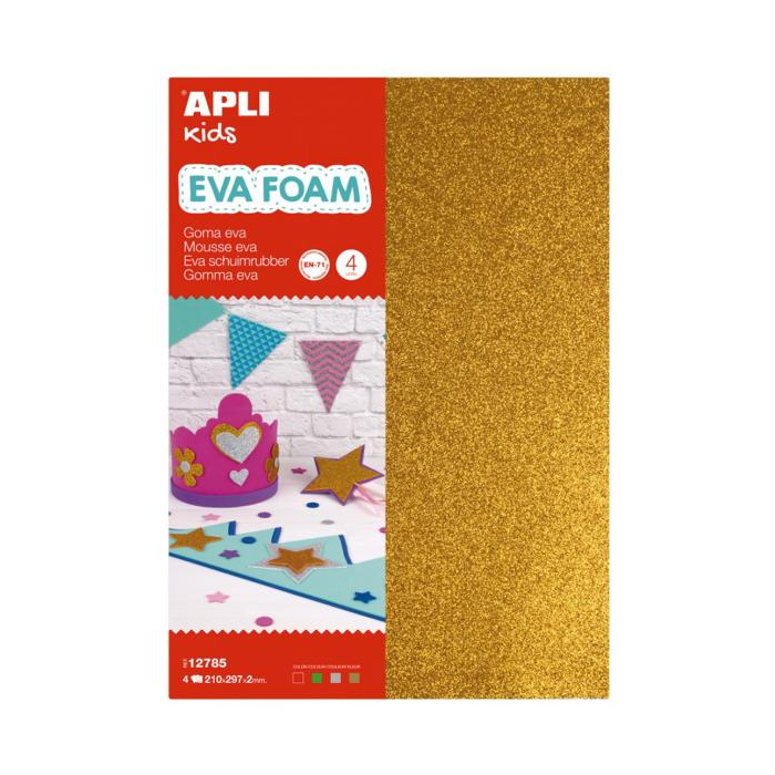 Balenie peny EVA, rozmer A4 (210 x 297 mm), hrúbka 2 mm a v rôznych farbách: strieborná, zlatá, červená a zelená. Každé balenie obsahuje 4 listy (1 na farbu). Pena EVA je ideálny materiál na ručné práce, a to ako v domácnosti, tak aj v škole. Je mäkká, ohybná, ľahko sa strihá, lepí a maľuje. Je tiež nepriepustná a dá sa tepelne tvarovať. Základný materiál na výrobu bábik fofucha, masiek, korún, kostýmov a všetkých druhov ručných prác.
