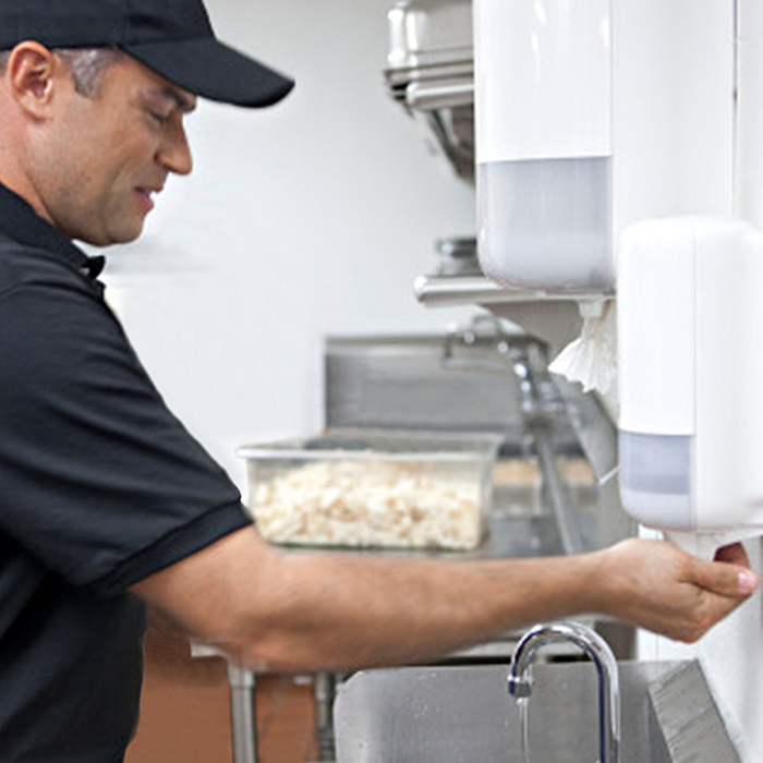 Na hygienické umývanie rúk v súlade s normou EN 1499: Navlhčite si ruky, použite 3 ml, dôkladne umývajte 30 sekúnd, opäť použite 3 ml a znova umývajte 30 sekúnd, ruky dôkladne opláchnite a osušte papierovou utierkou.