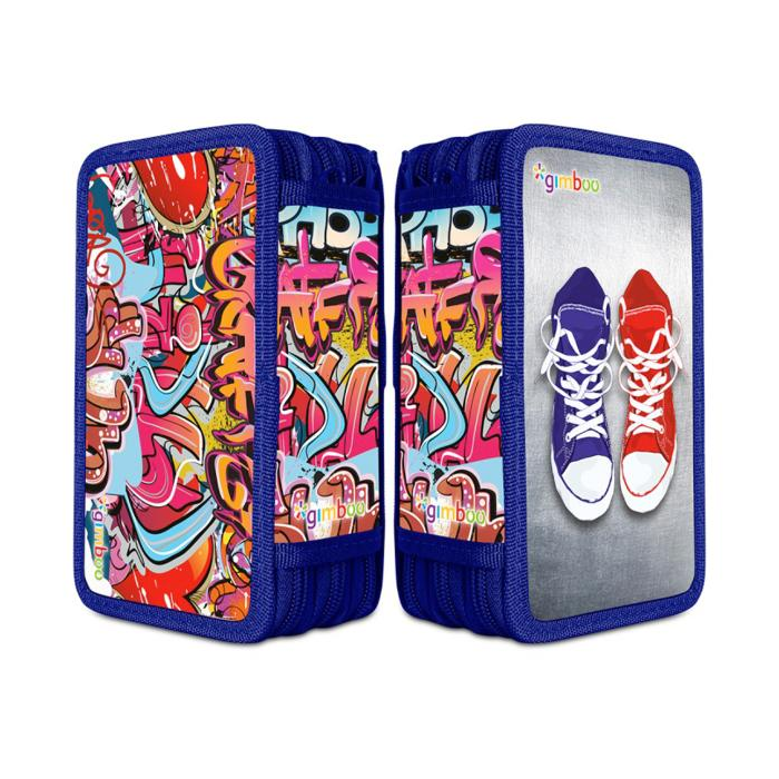 Peračník Gimboo 3-zipsový plný, Graffiti, modrý, 10 ks