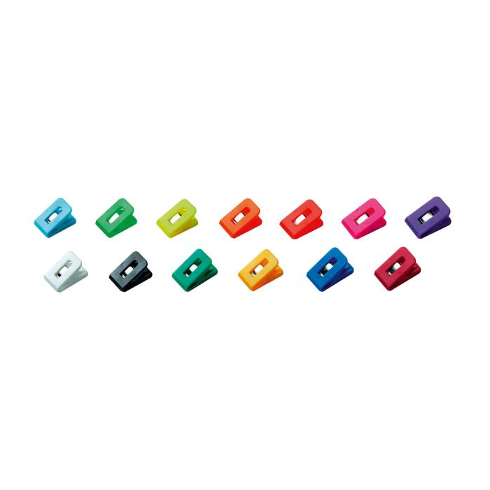 Listové klipy z plastu so silnou oceľovou pružinou. Mix farieb, bez možnosti výberu konkrétnej farby.