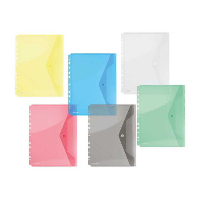 Plastový obal z priehľadného PP s uzatvárateľnou klopou a eurodierovaním. Formát A4, hrúbka 200 µm.