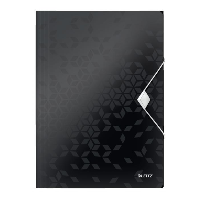 Trojchlopňový obal na dokumenty do formátu A4 z polypropylénu. V dizajne rady WOW v žiarivých farbách. Uzatváranie uchytením na gumičku. Kapacita 150 listov. Väčšie balenie 10 ks. Farba čierna.