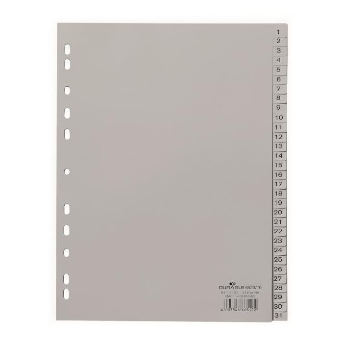 Plastový rozraďovač DURABLE 1-31 sivý