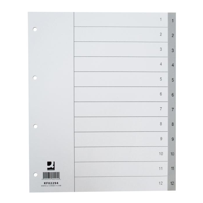 Plastový rozraďovač Q-CONNECT 12-dielny maxi sivý