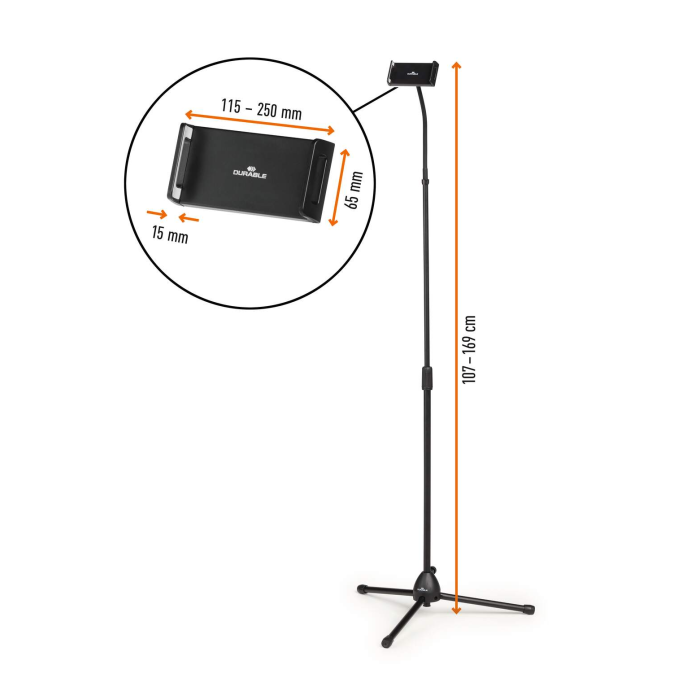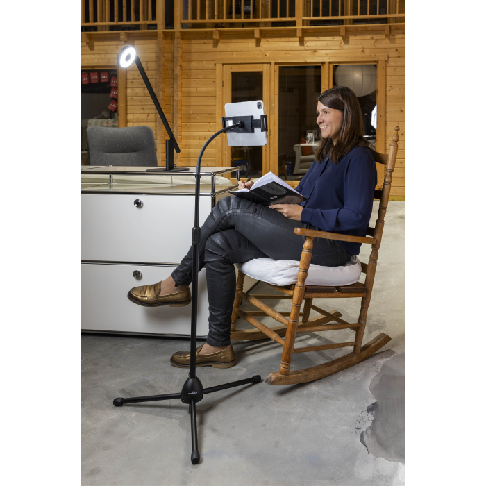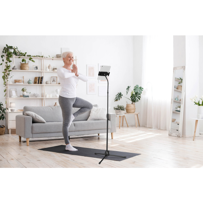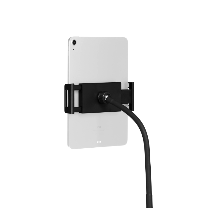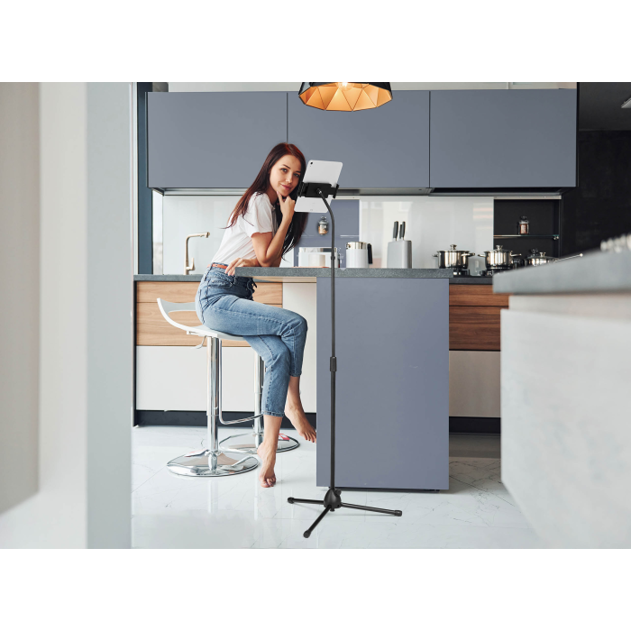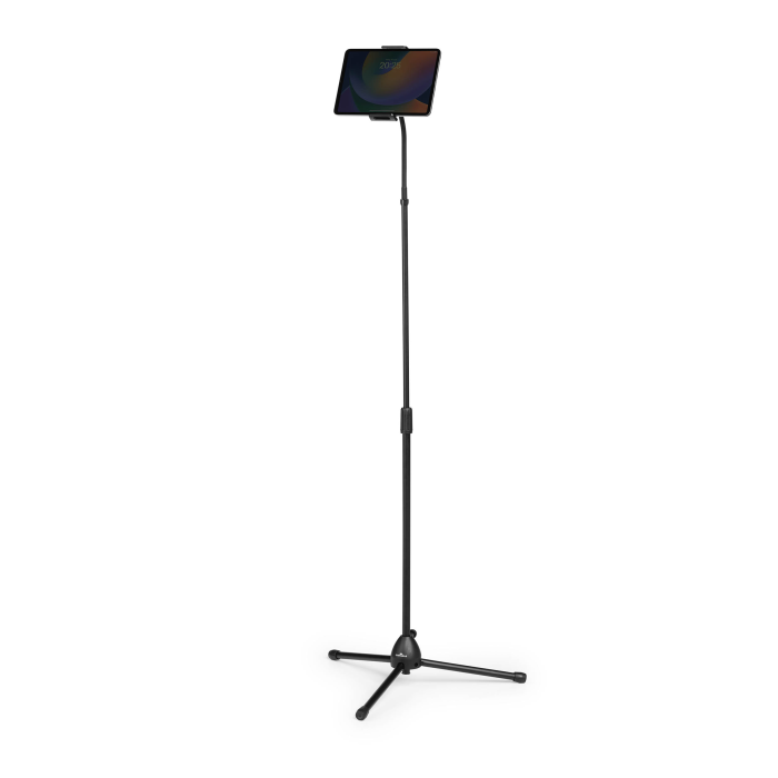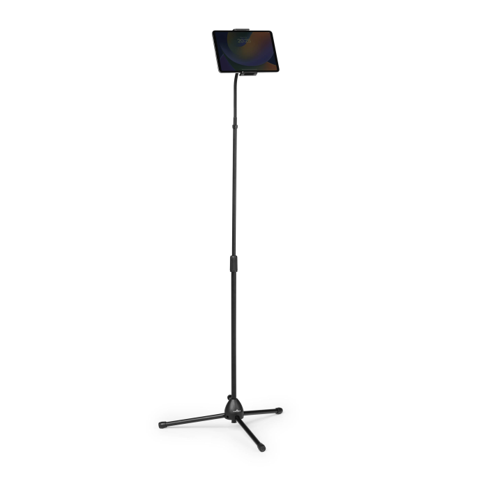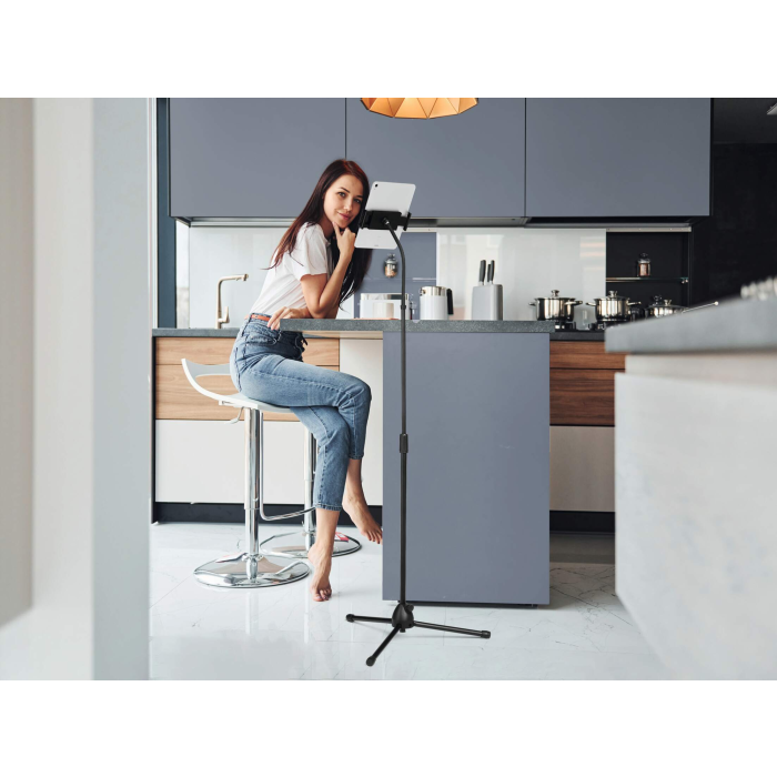 Podlahový stojan na tablety a mobilné telefóny od 4,7-13`. Stojan s teleskopickou tyčou a flexibilným ramenom pre plynulé otáčanie a nastavenie výšky.