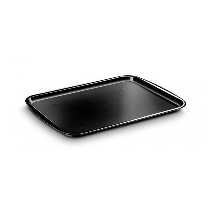 Stabilný silný stohovateľný podnos z polykarbonátu. Ľahko sa čistí, možnosť umývania v umývačke. Rozmery 372 × 532 mm. Farba čierna.