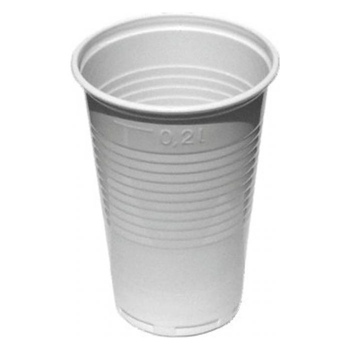 Jednorazové biele plastové poháre, hygienicky balené, objem 200 ml. Balenie 100 ks.