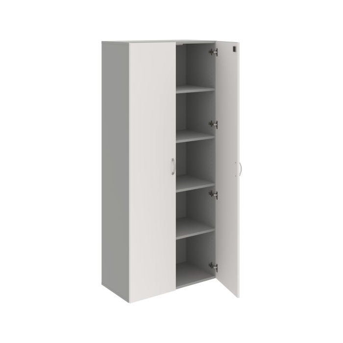 Policová skriňa Drive, zámok, 80x185x42 cm, biela/sivá
