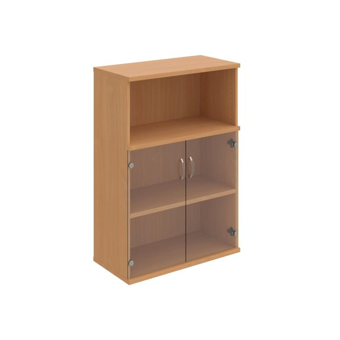 Kombinovaná skriňa - dvere/nika. Kancelárske skrine STRONG majú robustnú konštrukciu a vyššiu nosnosť políc ako bežné kancelárske skrine.V ponuke sú skriňové moduly s výškou 185 cm, 111 cm alebo 74 cm a šírky 80 cm alebo 40 cm. Hĺbka všetkých modelov skriňového radu STRONG je 40 cm.Chrbát, vyrobený z 8 mm hrubých dosák, je obojstranne pohľadový, takže skrine môžete použiť ako priestorový deliaci prvok. Hrúbka samotných políc je 25 mm, čo znamená nosnosť 80 kg na 1 policu.Korpusy, dvierka a police skríň sú olepené odolnou 2mm ABS hranou, ktorá garantuje dostatočnú ochranu proti poškodeniu.