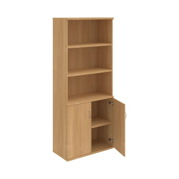 Kombinovaná skriňa - dvere/nika. Kancelárske skrine STRONG majú robustnú konštrukciu a vyššiu nosnosť políc ako bežné kancelárske skrine.V ponuke sú skriňové moduly s výškou 185 cm, 111 cm alebo 74 cm a šírky 80 cm alebo 40 cm.Hĺbka všetkých modelov skriňového radu STRONG je 40 cm.Chrbát, vyrobený z 8 mm hrubých dosák, je obojstranne pohľadový, takže skrine môžete použiť ako priestorový deliaci prvok. Hrúbka samotných políc je 25 mm, čo znamená nosnosť 80 kg na 1 policu.Korpusy, dvierka a police skríň sú olepené odolnou 2mm ABS hranou, ktorá garantuje dostatočnú ochranu proti poškodeniu.