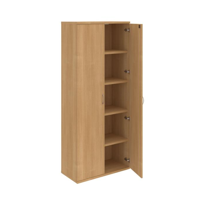 Kancelárske skrine STRONG majú robustnú konštrukciu a vyššiu nosnosť políc ako bežné kancelárske skrine.V ponuke sú skriňové moduly s výškou 185 cm, 111 cm alebo 74 cm a šírky 80 cm alebo 40 cm.Hĺbka všetkých modelov skriňového radu STRONG je 40 cm.Chrbát, vyrobený z 8 mm hrubých dosák, je obojstranne pohľadový, takže skrine môžete použiť ako priestorový deliaci prvok. Hrúbka samotných políc je 25 mm, čo znamená nosnosť 80 kg na 1 policu.Korpusy, dvierka a police skríň sú olepené odolnou 2mm ABS hranou, ktorá garantuje dostatočnú ochranu proti poškodeniu.