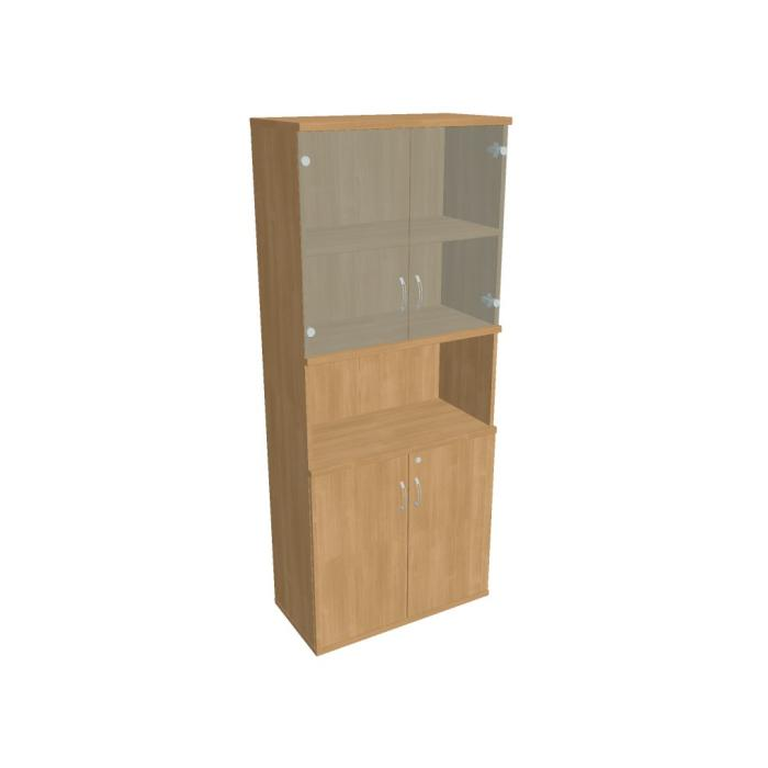 Kombinovaná skriňa - dvere/nika. Kancelárske skrine STRONG majú robustnú konštrukciu a vyššiu nosnosť políc ako bežné kancelárske skrine.V ponuke sú skriňové moduly s výškou 185 cm, 111 cm alebo 74 cm a šírky 80 cm alebo 40 cm. Hĺbka všetkých modelov skriňového radu STRONG je 40 cm.Chrbát, vyrobený z 8 mm hrubých dosák, je obojstranne pohľadový, takže skrine môžete použiť ako priestorový deliaci prvok. Hrúbka samotných políc je 25 mm, čo znamená nosnosť 80 kg na 1 policu.Korpusy, dvierka a police skríň sú olepené odolnou 2mm ABS hranou, ktorá garantuje dostatočnú ochranu proti poškodeniu.