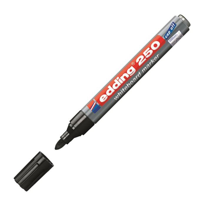 Popisovač na biele tabule, zasucha stierateľný. Plnený pigmentovým atramentom slabého zápachu bez prísady butylacetátu s vlastnosťou `Cap off`, zabraňujúcou vysychaniu atramentu pri otvorenom hrote aj niekoľko dní. Dopĺňateľný atramentom edding BT 30 alebo BTK 25. Hliníkové telo, vymeniteľný hrot. Hrot okrúhly, šírka stopy 1,5 - 3 mm. Dodávaný samostatne. Väčšie balenie 10 ks.