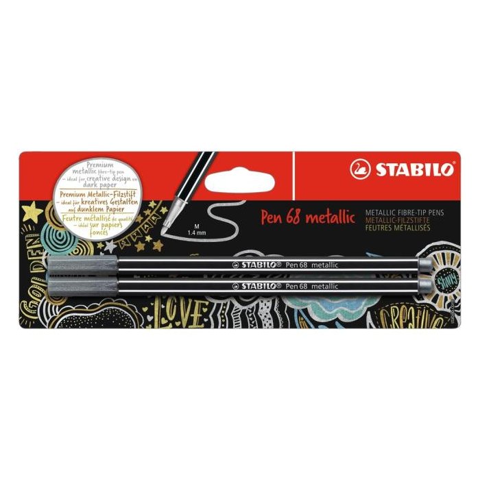 Popisovač STABILO Pen 68 2ks v blistri metalic strieborná