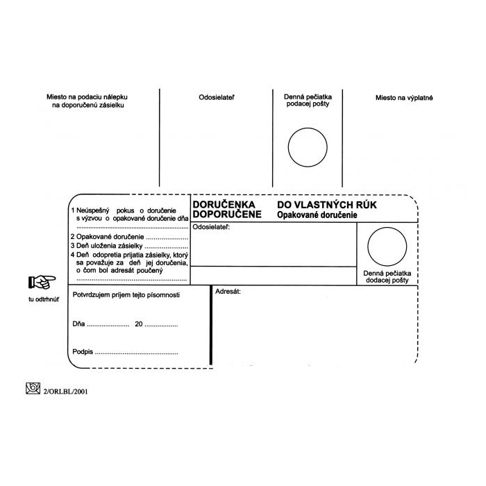 Poštové obálky B6 doručenka do VR OD, Doposielať, olizové 100 ks