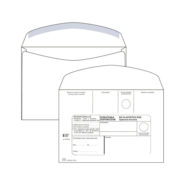 Biele papierové obálky rozmerov 162 × 229 mm s okienkom, popisom a lichobežníkovou klopou, olizové, 80 g/ m². Balenie obsahuje 100 ks.