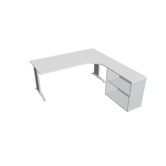 Pracovný stôl Flex, ergo, ľavý, 180x75,5x200,0 (80x40) cm, biela/kov