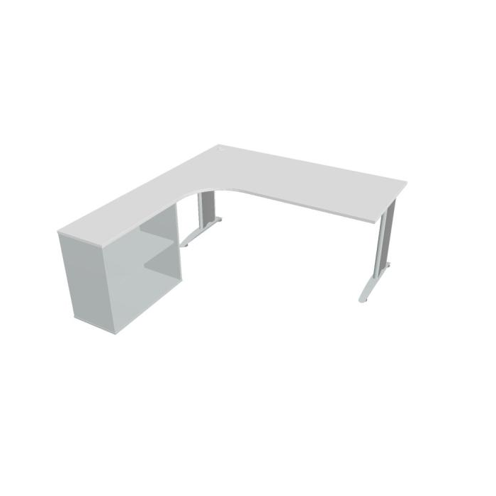 Pracovný stôl Flex, ergo, pravý, 180x75,5x200,0 (40x80) cm, biela/kov