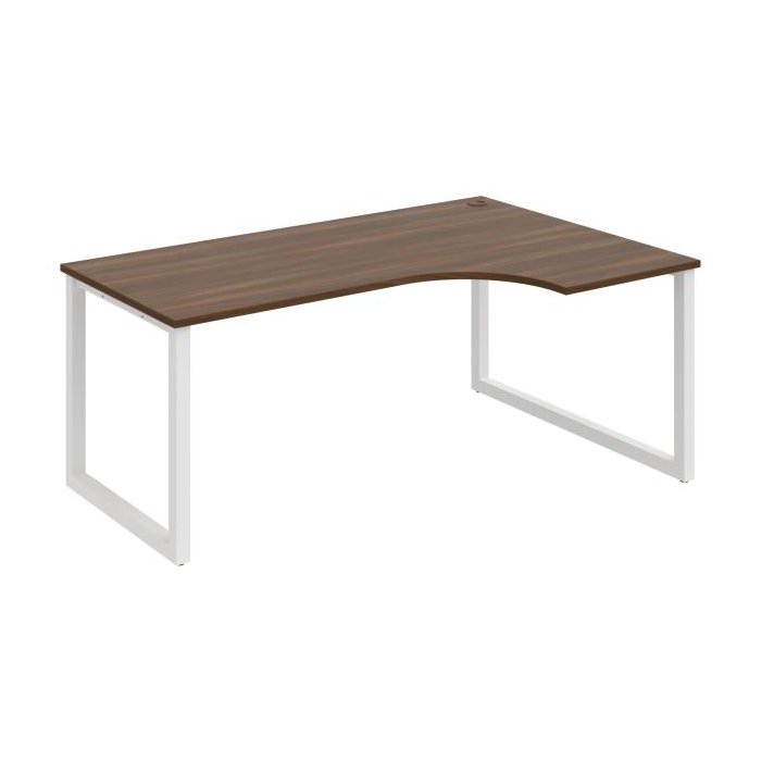 Pracovný stôl UNI O, ergo, ľavý, 180x75,5x120 cm, orech/biela