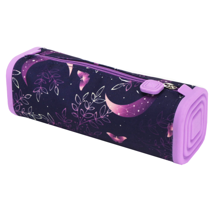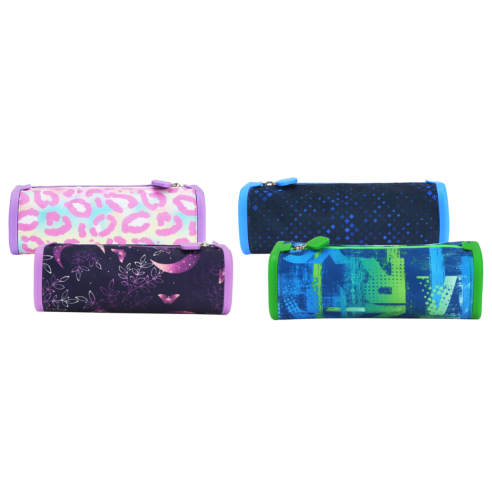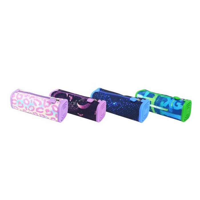 Puzdro na perá má rozmery 21,5 × 7,5 × 7,5 cm a zapína sa na zips. Je vyrobené z kombinácie silikónu a polyesteru, dostupné v rôznych farbách a je ideálne na uloženie pier, gumy a malých písacích potrieb. Praktické, odolné a vhodné na každodenné použitie v škole alebo kancelárii.