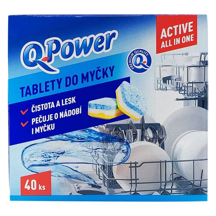 Tablety do umývačiek riadu Q-Power obsahujú obzvlášť účinné látky a sú mimoriadne efektívne. Obohatené o zložky, ktoré dodávajú riadu oslnivý lesk a soli zabraňujúce usadzovaniu vodného kameňa. Balenie 40 tabliet.