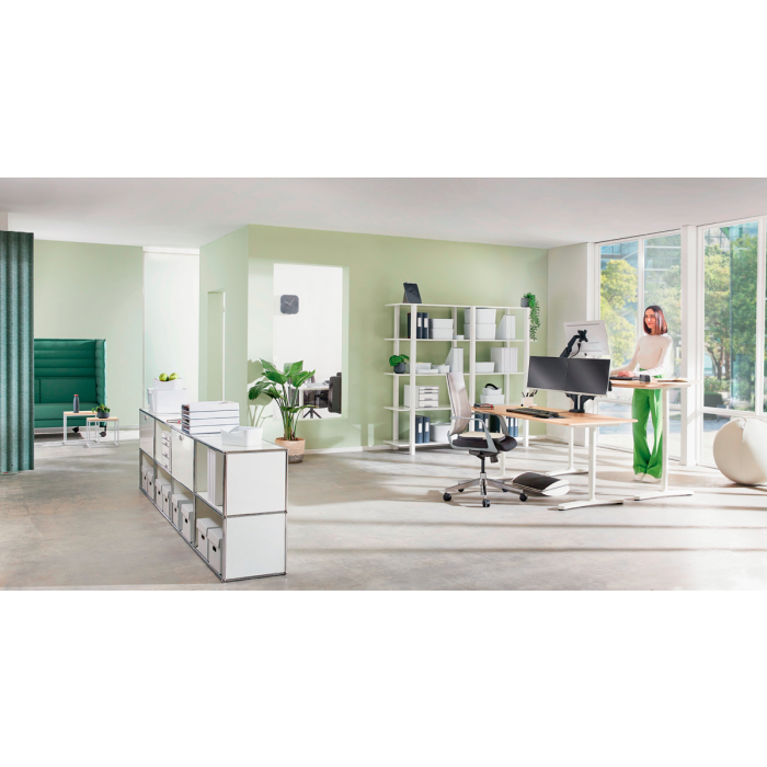 Súprava dvoch ramien na monitor a držiaka na notebook. Podpora obľúbenej aplikácie pre domácu kanceláriu: použitie obrazovky notebooku ako druhého monitora. Bezpečne držia notebooky do veľkosti 17 palcov a hrúbky 2,4 cm. Nezakrýva USB a ďalšie sloty.