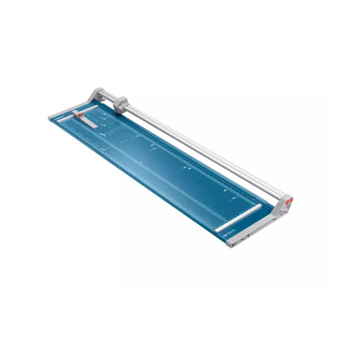 Profesionálna rezačka s kovovou základňou a presným rezom na grafické účely (filmy, fólie, papier). Kruhový nôž umiestnený v plastovom ochrannom kryte sa automaticky brúsi pri rezaní o protinôž - oba nože z tvrdenej ocele. Dvojitá vodiaca lišta pre absolútne presné rezanie. Automatický prítlak pohybom rezacej hlavy, zadný doraz. Mierka v cm/inch. Na pracovnom stole sú vyznačené formáty DIN. Možnosť montáže na stenu.
