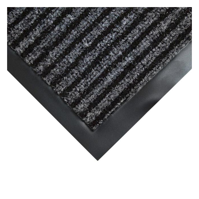 Vstupná rohož s rebrovaným povrchom, ktorý je určený pre náročné vstupné zóny. Vytvára „kanáliky“ na zachytenie špiny a nečistôt a vysušuje vlhkosť z podrážok, čím zvyšuje bezpečnosť chôdze na hladkej podlahe. Vhodná do vstupných priestorov, hál a chodieb. Vlas zo 100% polypropylénu, spodná strana rohože z PVC s ochranou proti znečisteniu a pošmyknutiu. Výška 9 mm. Trieda horľavosti podľa európskej normy EN 13501-1. Rozmery 90 x 150 cm. Farba sivá.