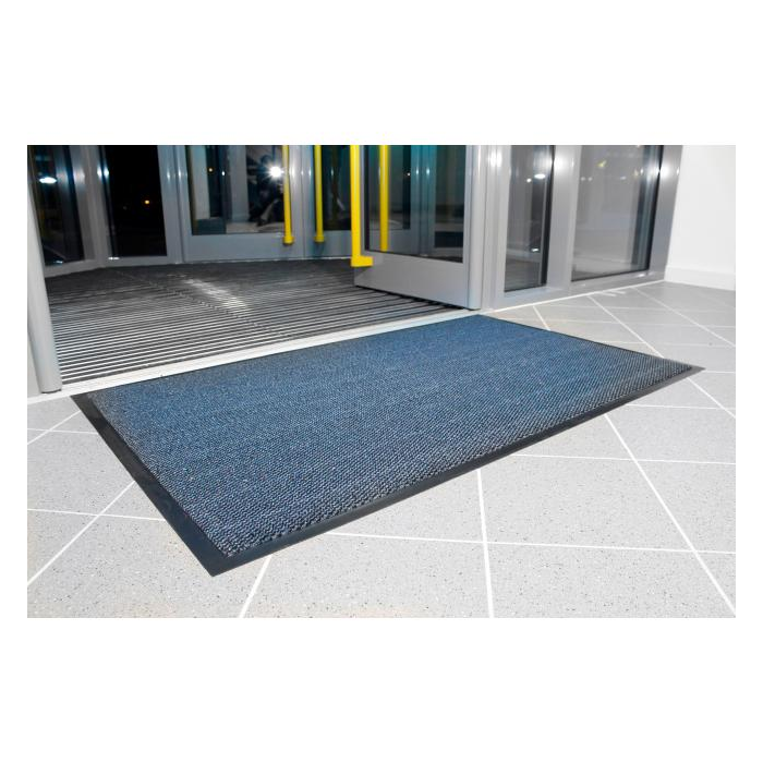 Ekonomická a účinná stieracia rohož vhodná do vstupných priestorov, hál a chodieb. Rubová strana z PVC s úpravou proti pošmyknutiu a znečisteniu, materiál vlasu je 100 % polypropylén. Výška 7 mm. Rozmery 60 x 90 cm. Farba čierna/modrá.