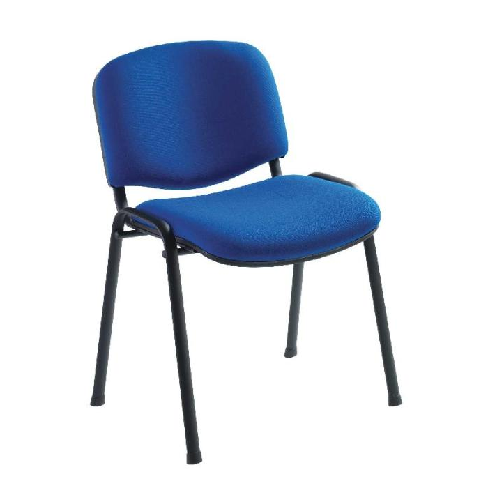 Stohovateľná konferenčná stolička s látkovým poťahom, sedadlo so spodním plastovým krytom.